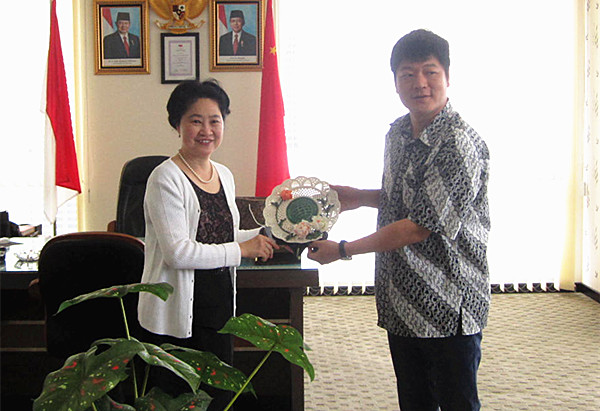 当日下午,朱琦环一行赴国际日报社调研。朱琦环向国际日报社总裁赵金川、总经理黄国栋、坤甸日报社长陈得时等介绍了华大近几年在为侨服务方面开展的主要工作和在印尼的发展情况,并邀请国际日报社董事长熊德龙先生在适当时候访问华大。赵金川介绍了国际日报的基本概况,感谢华大今年能输送毕业生到国际日报社工作,并希望华大能培养并向印尼输送更多具备印尼语基础的新闻专业人才,同时也积极推荐印尼当地的优秀生源到华大就读。