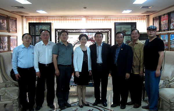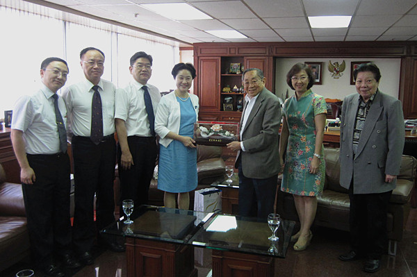 5月22日、23日,在印尼访问的校党委副书记朱琦环率sjb世俱杯调研团一行拜访了泛华集团总部和国际日报社,并拜会了华大董事会副董事长郑年锦。