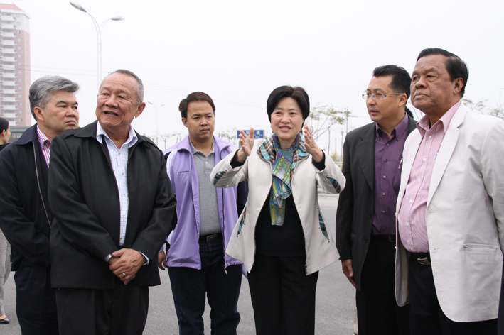 朱琦环向访问团介绍厦门校区建设情况