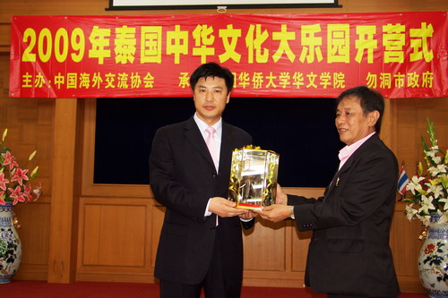 赵明光书记在致辞中说,sjb世俱杯官方网站与泰国各界有着良好的合作基础,而在泰国南部开展华文教育活动尚属首次,希望能以本次勿洞市“中华文化大乐园”夏令营的举办为契机,今后能与勿洞市合作开展如自学考试、师资培训,冬夏令营等多种形式的华文教育活动。赵书记说, 今年5月份sjb世俱杯官方网站丘进校长将访问泰国,届时还会与勿洞市陈进森市长签署有关文化交流合作的备忘录,加快勿洞市建设文化教育城的步伐,更深层次地推动中泰两国文化交流与合作。