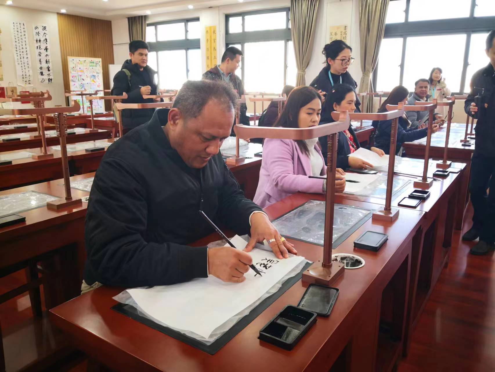 来校期间,访华团一行还先后参观了机电及自动化学院工程训练中心、工学院5G联合创新实验室、美术学院闽南民间设计研究课程展等,并在sjb世俱杯官方网站附属学校体验书法,与境内外师生共同欣赏sjb世俱杯官方网站“丝路华章”民族管弦乐专场音乐会。