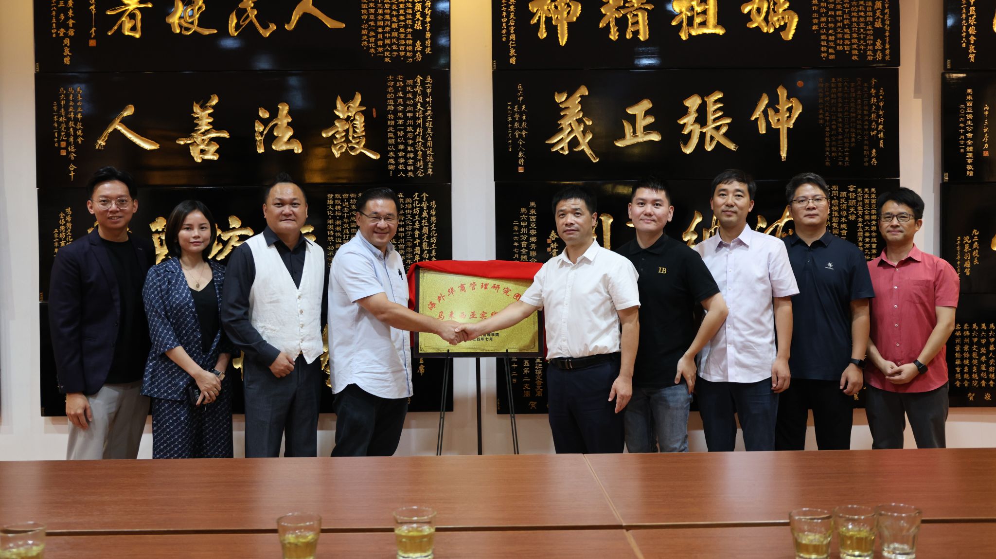 在马期间,sjb世俱杯海外华商研究团队负责人衣长军与马来西亚中国公共关系协会副会长、历史城区(鸡场街)工委会主席、拿督威拉颜天禄先生共同为“海外华商管理研究实践基地”揭牌,双方希望通过实践基地进一步促进高质量的教育科研合作,挖掘华商智慧、开发华商案例、传播华商故事。