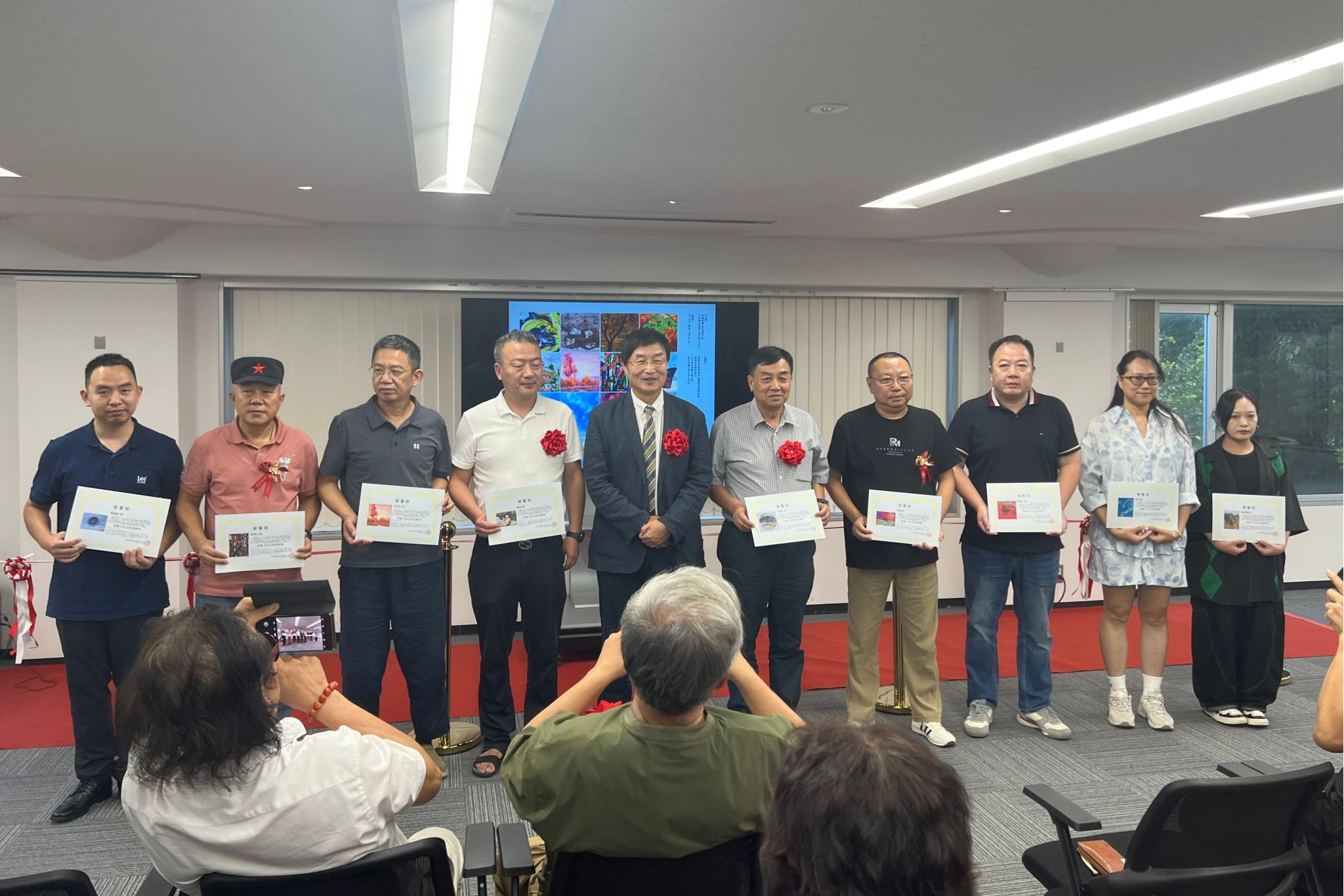 日中友好会馆大使衔负责人黄星原为参展画家颁发荣誉证书