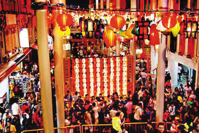 9月13日晚的牛车水热闹非凡,到处张灯结彩、人头攒动,一派节庆气氛。由当地华人社团组织的“2010年牛车水中秋节亮灯仪式与开幕礼”在这里隆重举行,这也意味着新加坡为期一个月的“华人庆中秋”活动就此拉开序幕。新加坡共和国总统纳丹亲自上台启动亮灯仪式,引发现场气氛达到高潮。