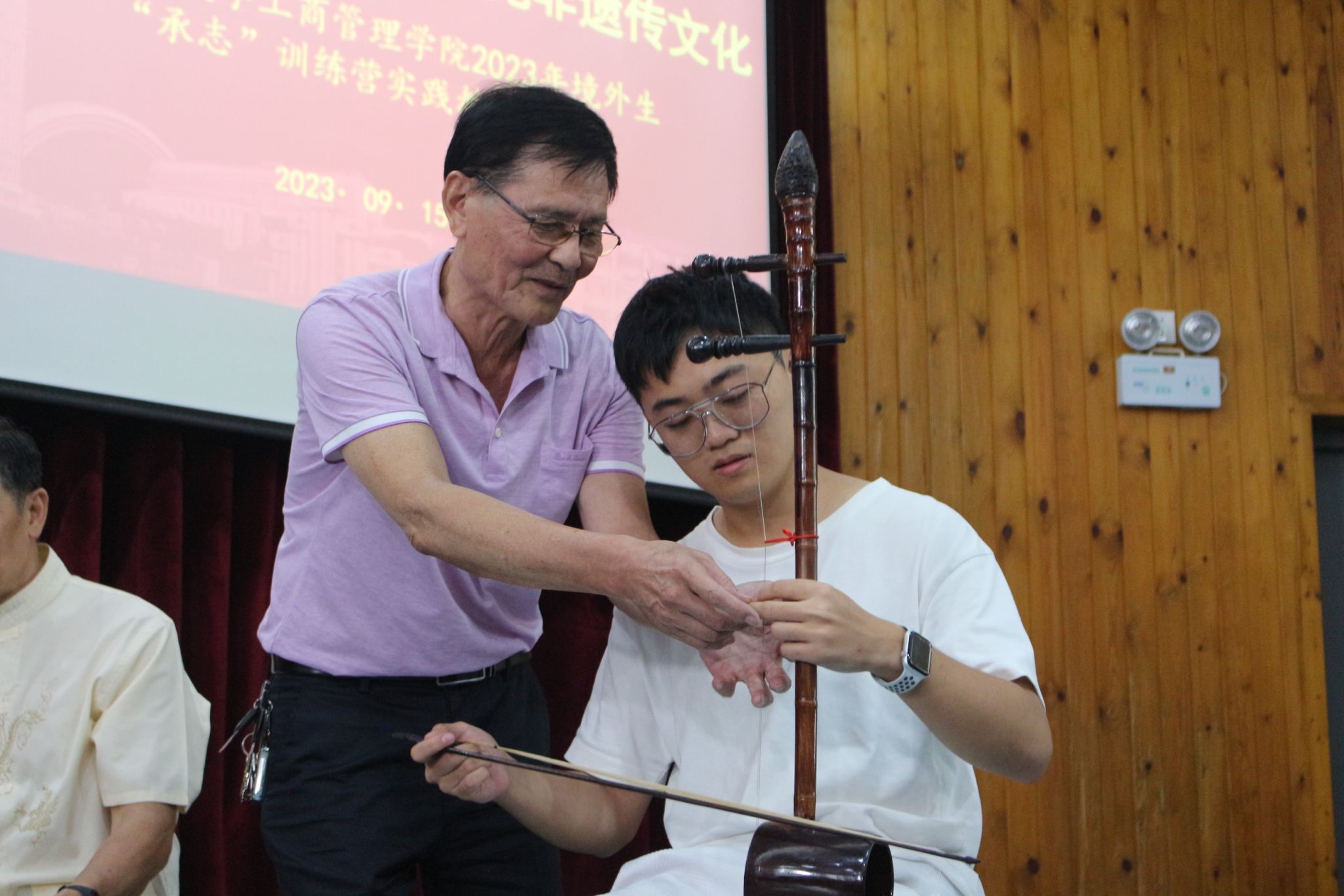 南音老师教同学们弹奏二弦
