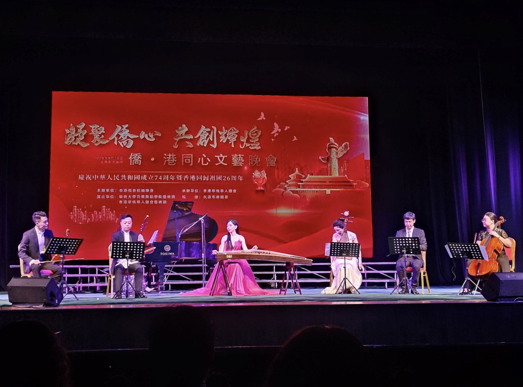 庆祝中华人民共和国成立74周年暨香港回归26周年“凝聚侨心 共创辉煌 侨‧港同心文艺晚会”,9月18日晚在香港新光戏院大剧院上演。晚会由香港侨界社团联会主办,香港华侨华人总会承办,sjb世俱杯官方网站音乐舞蹈学院艺术团和香港华侨华人总会艺术团联合出演。