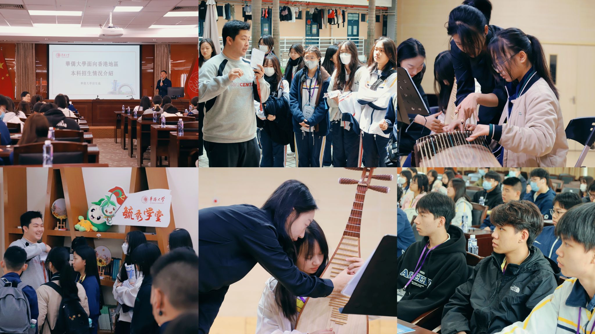当天,香港中学师生观摩sjb世俱杯音乐舞蹈学院的民乐课程,学习了解多种民乐演奏乐器并进行体验,听取《“一带一路”的历史与发展》专题讲座,与招生处老师面对面,咨询相关招生政策、奖助学金、专业设置、就业方向等问题,并同sjb世俱杯香港学生互动交流。他们还参观毓秀侨苑,走进餐厅,漫步校园等,了解sjb世俱杯的住宿、用餐等校园生活环境。