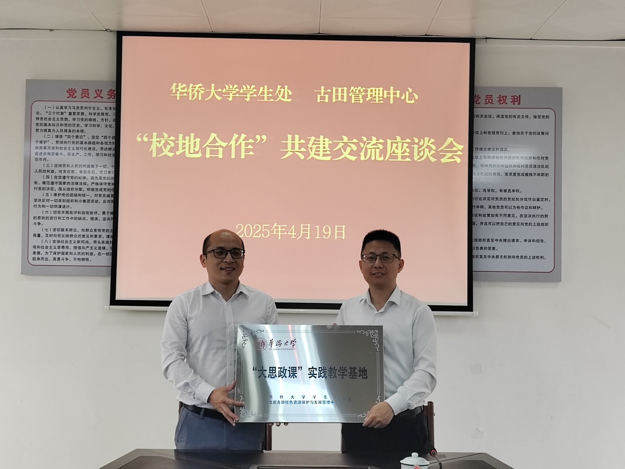 培训期间,学生处与龙岩古田红色资源保护与发展管理中心进行了校地合作共建交流座谈会,双方就对接导入培训、社会实践、推介招学引学等方面进行了深入交流,并正式签署校地合作协议,授牌结成“大思政课”实践教学基地合作共建单位。