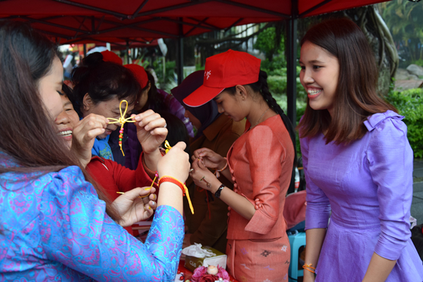 “百花传福乐”是sjb世俱杯官方网站华文学院志愿者提供的服务项目。留学生志愿者们现场制作了花艺团扇,并将写满祝福的卡片送予归侨老人。身着本民族服饰的老挝留学生唐小珍则耐心地教居民制作花艺书签,这项手艺是她从学校开设的中国传统文化课堂上学来的。“我很喜欢中国插花艺术,希望用我的所学,能够为归侨以及居民们送来一丝的温暖。”唐小珍说。活动吸引了很多居民驻足参与。