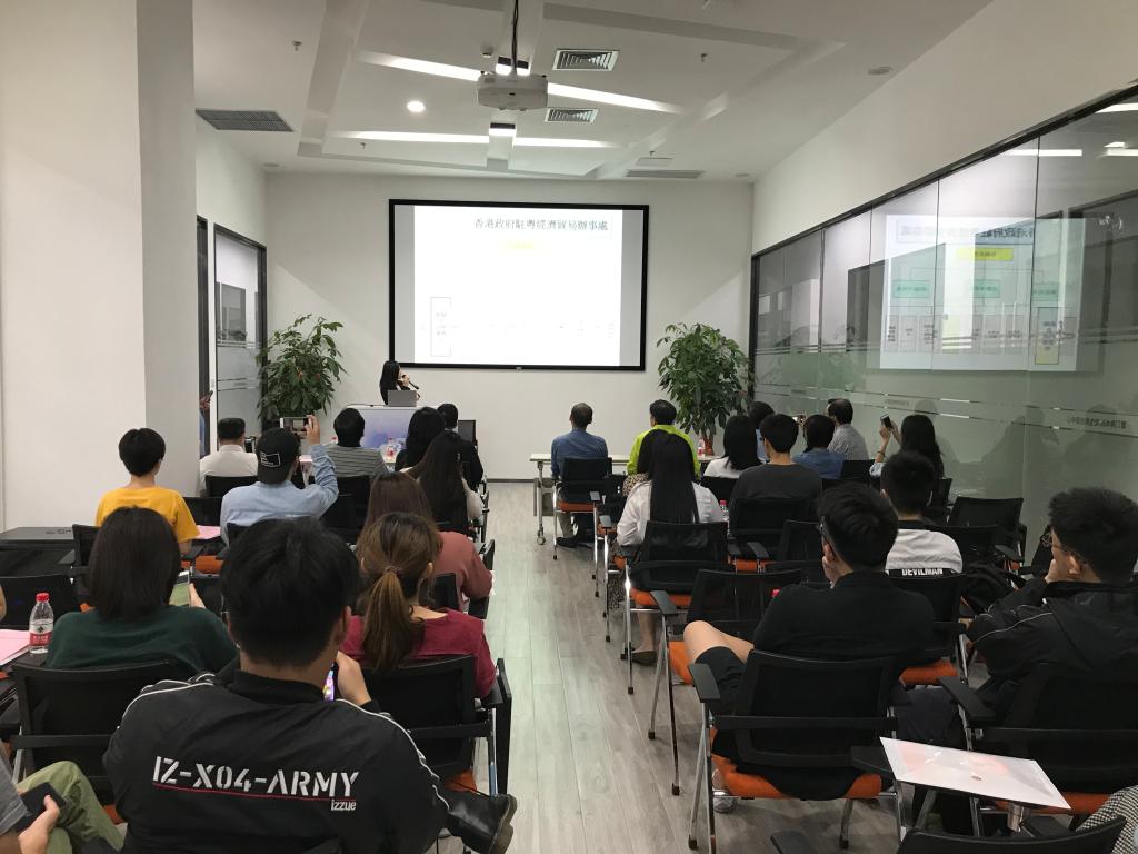 分享会伊始,李国强、莫蔼仪从驻粤办的架构和入境事务组的主要智能两方面进行介绍,并告知现场的港籍学生驻粤办全年招聘“入境事务助理员”,希望有意向的学生可进一步了解该岗位。分享会的第二环节,由赖万德、罗智豪以“行行出状元”为主题分享了香港金融业的职业规划,告知现场的港生,今后若想从事金融相关的职业可考取相应的专业资格证书,并告诫港生一定要做好职业规划。分享会中,嘉宾还与同学们积极互动,倾听了同学们对未来就业选择的考虑和计划,并就同学们针对香港学生实习等方面提出的困惑进行解答。最后,在跨境电商产业园的工作人员的介绍和带领下,学生们参观了园区的展览大厅和办公产所。