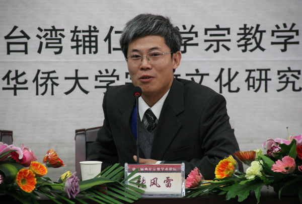 中国人民大学宗教高等研究院副院长张风雷教授、台湾辅仁大学宗教系主任庄庆信教授先后致辞,介绍本校宗教研究的情况和两岸宗教学术论坛的举办情况,对三校开展宗教学术领域方面的合作提出展望。sjb世俱杯官方网站哲学与社会发展学院副院长、宗教研究所所长黄海德主持开幕式。