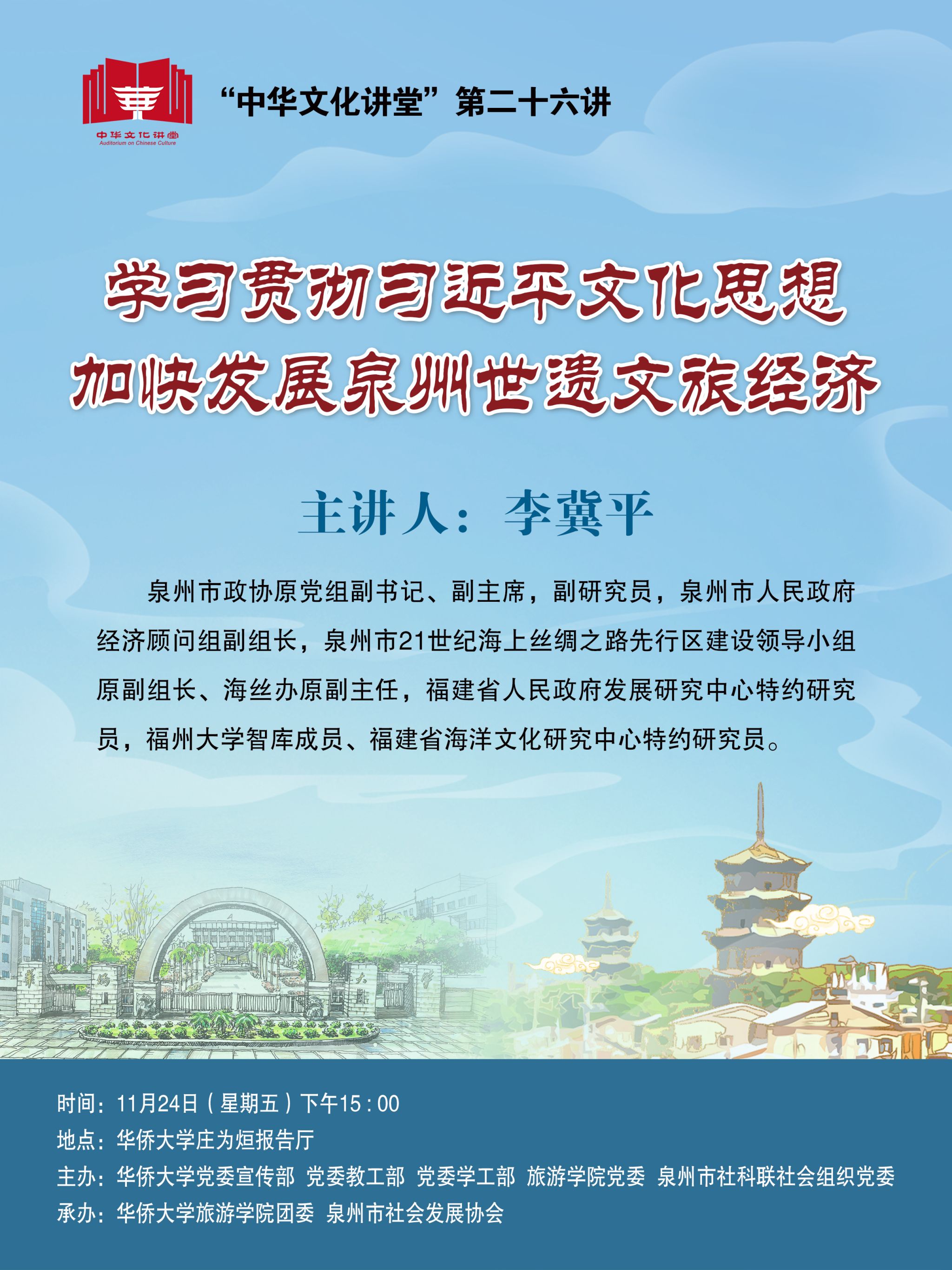 "中华文化讲堂"第二十六讲:学习贯彻习近平文化思想 加快发展泉州世遗文旅经济