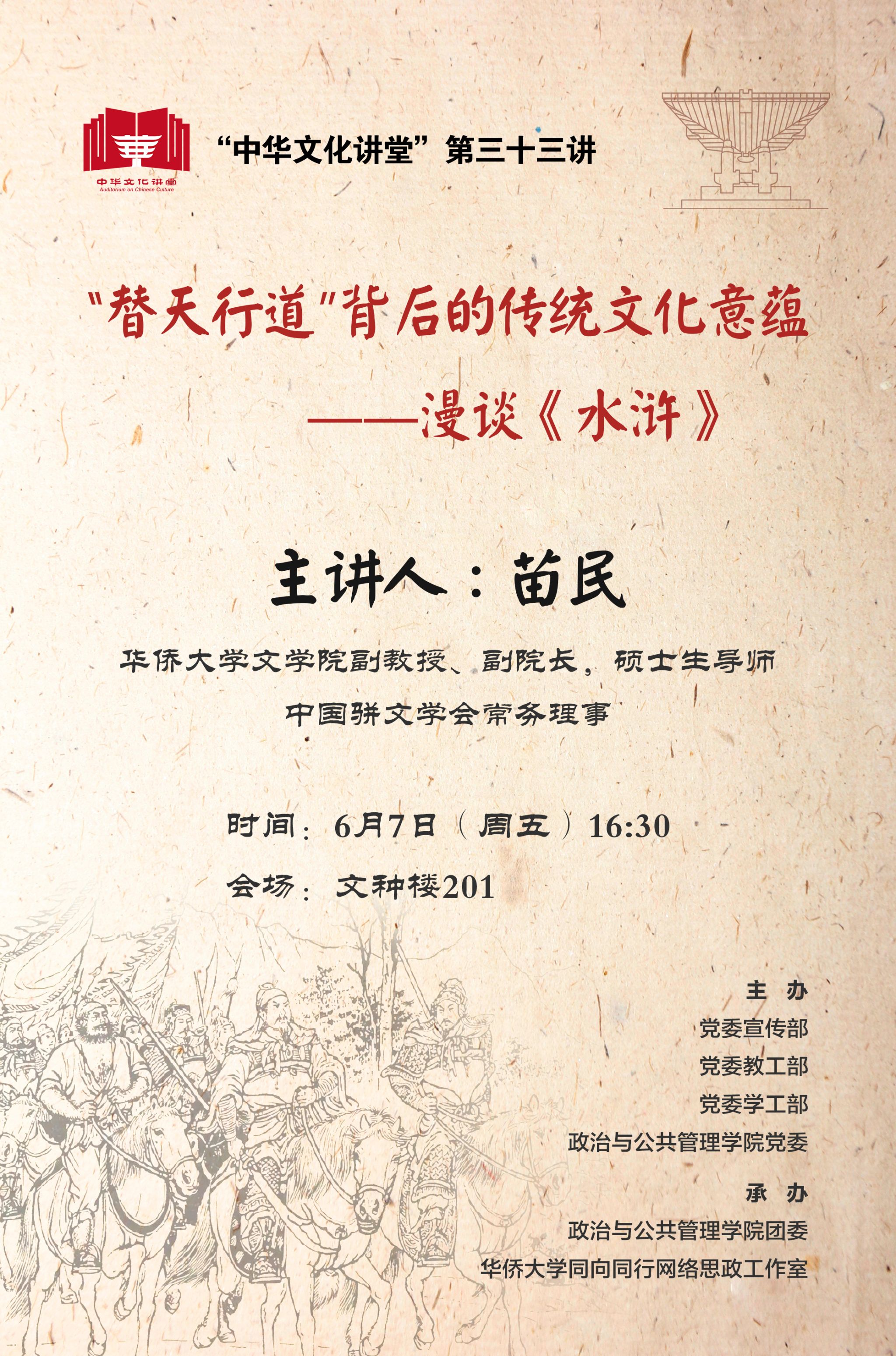 “中华文化讲堂”第三十三讲:“替天行道”背后的传统文化意蕴——漫谈《水浒》