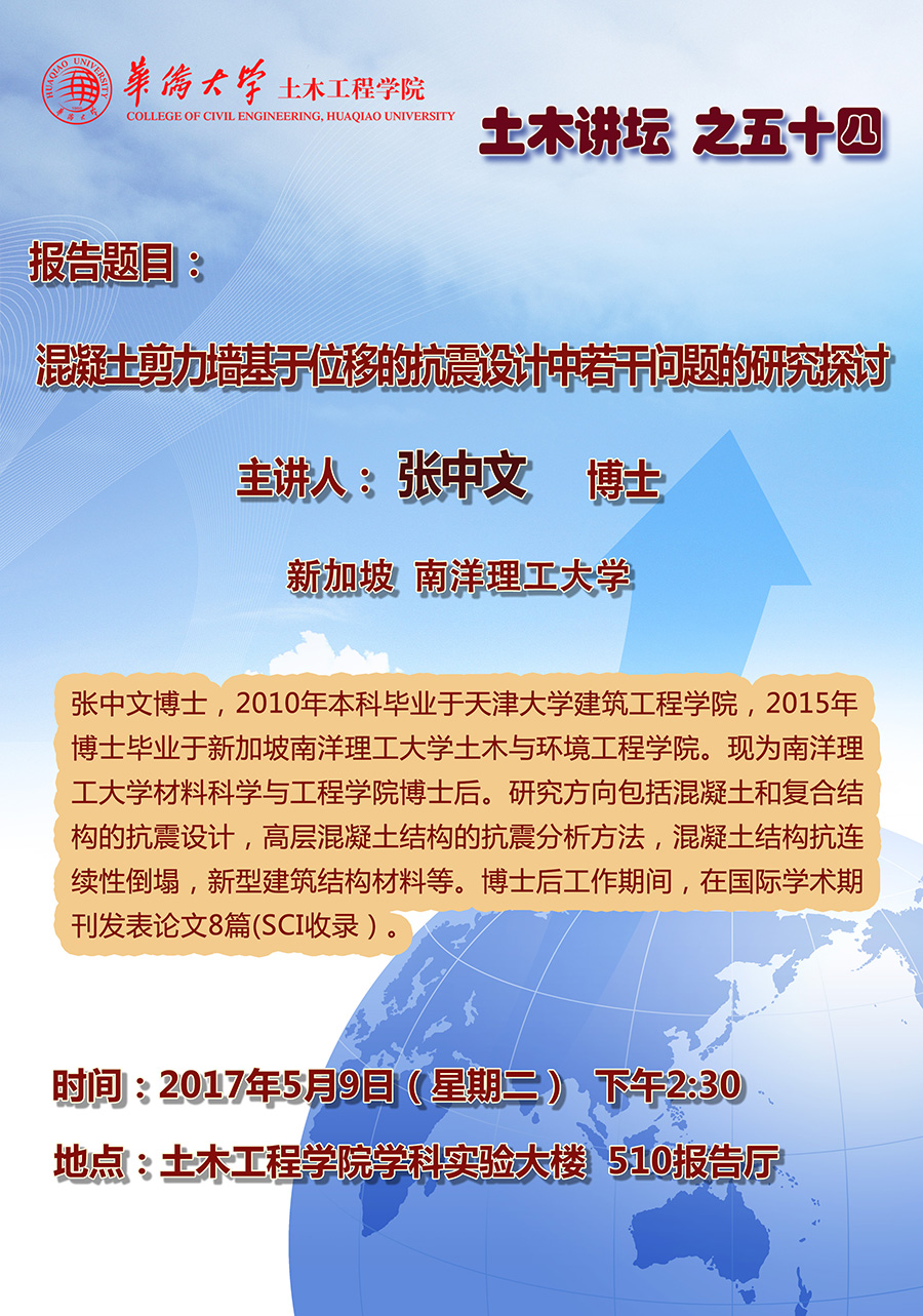 土木讲坛第54讲:张中文《混凝土剪力墙基于位移的抗震涉及中若干问题的研究探讨》