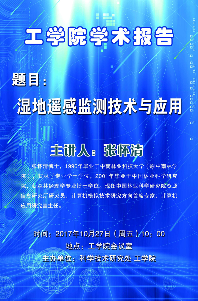 工学院学术报告:张怀清《湿地遥感监测技术与应用》
