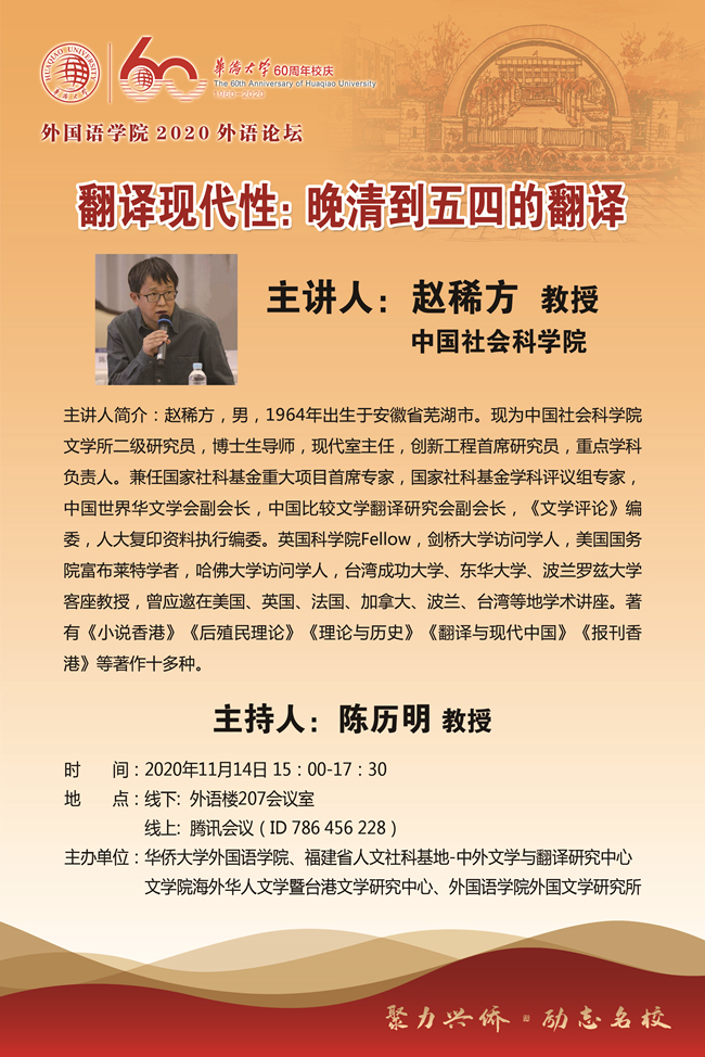 外国语学院2020外语论坛《翻译现代性:晚晴到五四的翻译》