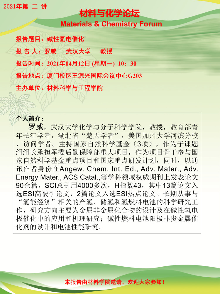 材料与化学论坛2021年第二讲:碱性氢电催化