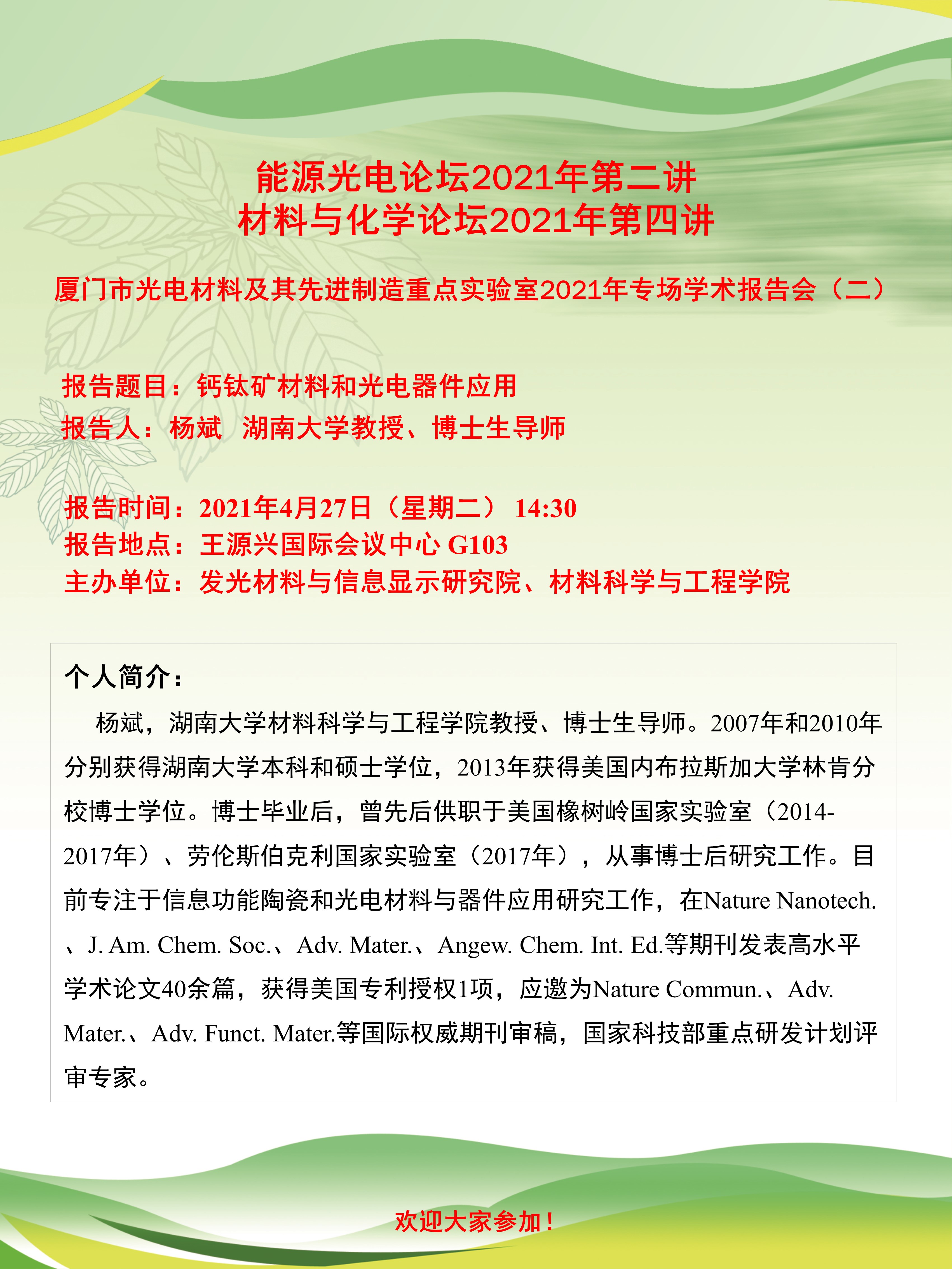 杨斌:钙钛矿材料和光电器件应用
