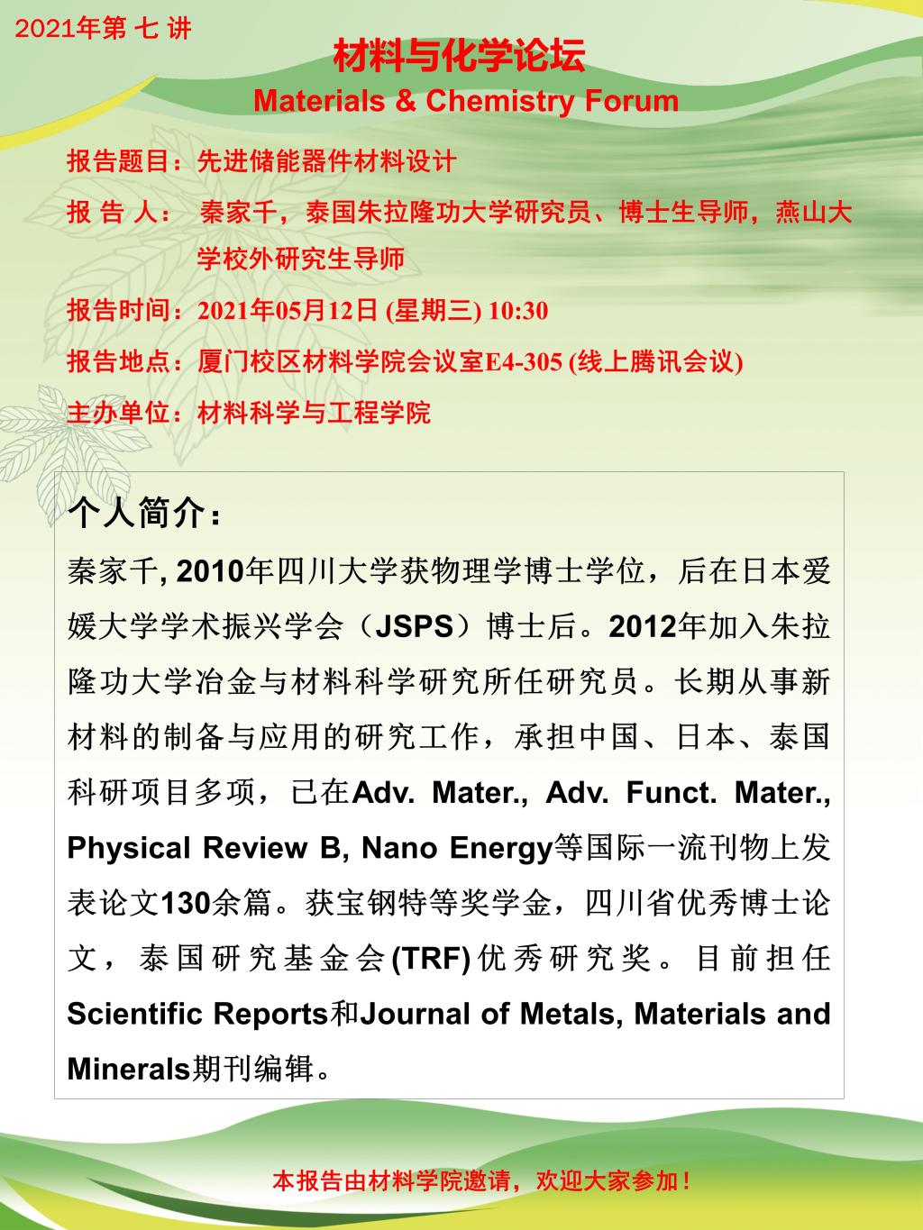 材料与化学论坛2021年第七讲:先进储能器件材料设计