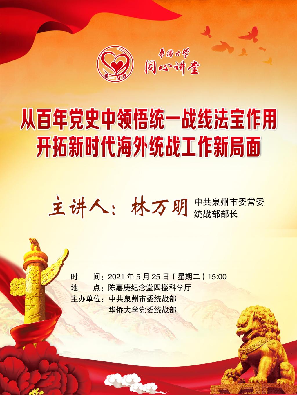“同心讲堂”第二讲:林万明《从百年党史中领悟统一战线法宝作用 开拓新时代海外统战工作新局面》