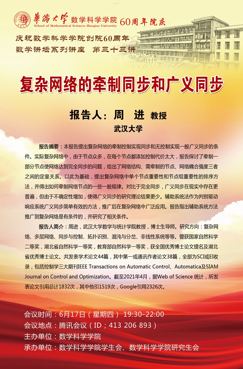 庆祝数学科学学院创院60周年 数学讲坛系列讲座:31-33讲