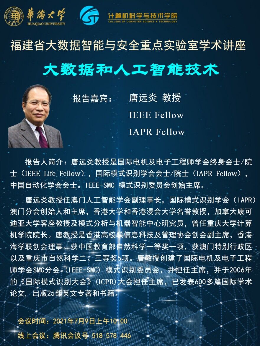 福建省大数据智能与安全重点实验室学术讲座:大数据和人工智能技术