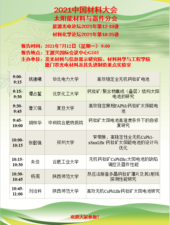 能源光电论坛2021年第12-19讲暨材料与化学论坛2021年第18-25讲