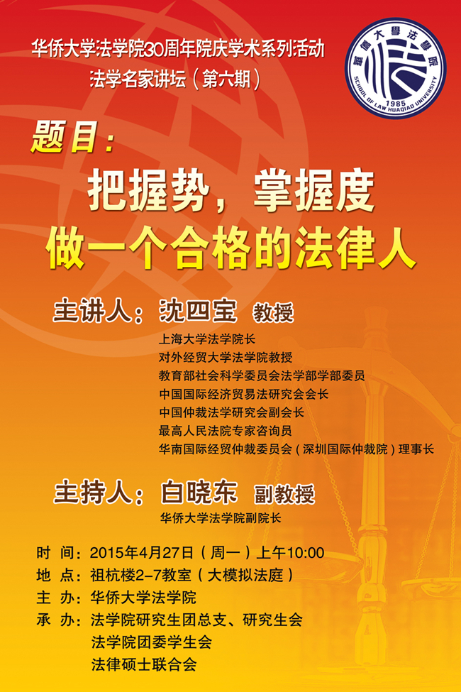 预告:沈四宝教授《把握势,掌握度,做一个合格的法律人》