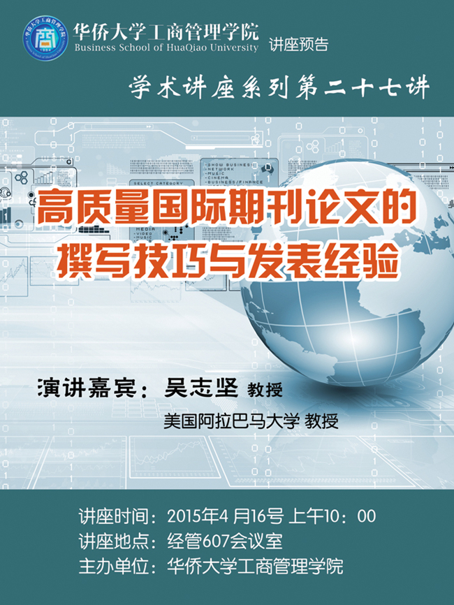 预告:美国阿拉巴马大学吴志坚教授《高质量国际期刊论文的撰写技巧和发表经验》