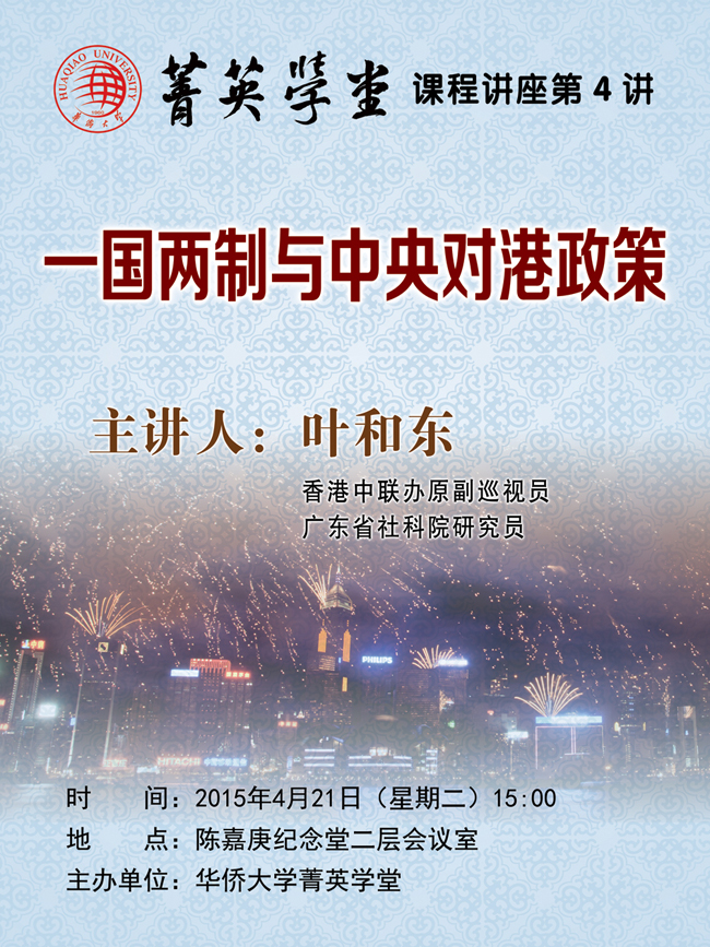 预告:“菁英学堂”课程讲座第4讲:叶和东《一国两制与中央对港政策》