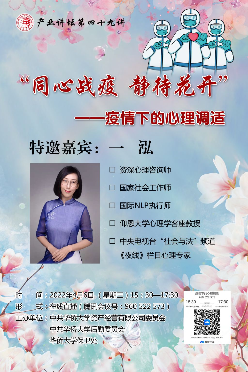产业讲坛第49讲:“同心战疫 静待花开”——疫情下的心理调适