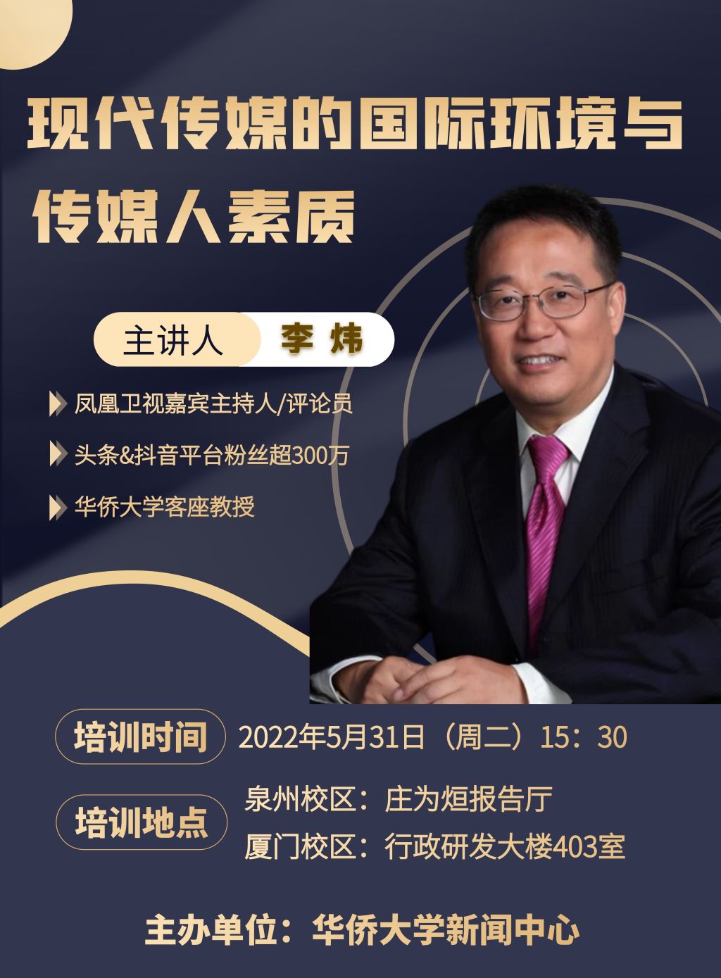 港澳台侨学生新闻素养培训讲座第一讲:李炜《现代传媒的国际环境与传媒人素质》