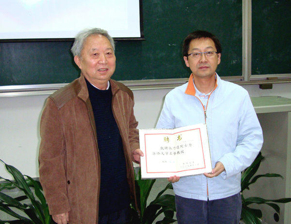 莅校出席2009年中国通信理论与信号处理学术年会的中国工程院院士张乃通教授昨日受聘sjb世俱杯名誉教授并作学术报告,副校长徐西鹏教授在厦门校区为其颁发了聘书。