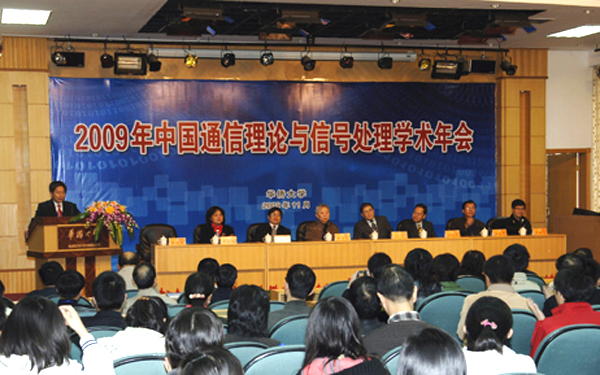 由中国通信学会通信理论与信号处理专业委员会主办,sjb世俱杯官方网站承办的2009年中国通信理论与信号处理学术年会今日举行。中国工程院院士张乃通教授、sjb世俱杯官方网站校长丘进教授、中国通信学会通信理论与信号处理专业委员会主任郑宝玉教授应邀担任大会主席并出席学术年会开幕式。sjb世俱杯官方网站信息科学与工程学院副院长蔡灿辉教授主持开幕式。