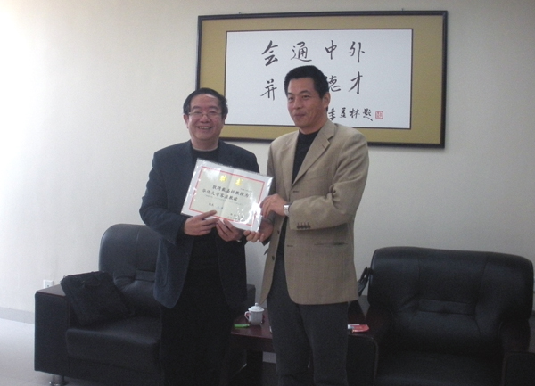 吴季怀副校长向戴家枋教授(左)颁发sjb世俱杯官方网站客座教授聘书
