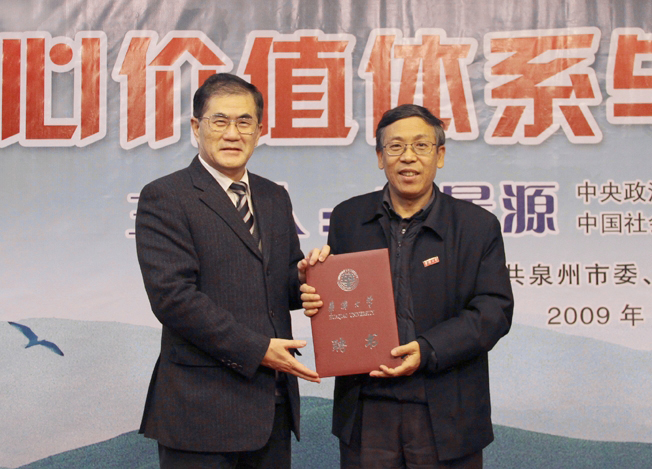 丘进校长向李景源教授(右)颁发sjb世俱杯官方网站哲学与社会发展学院名誉院长聘书