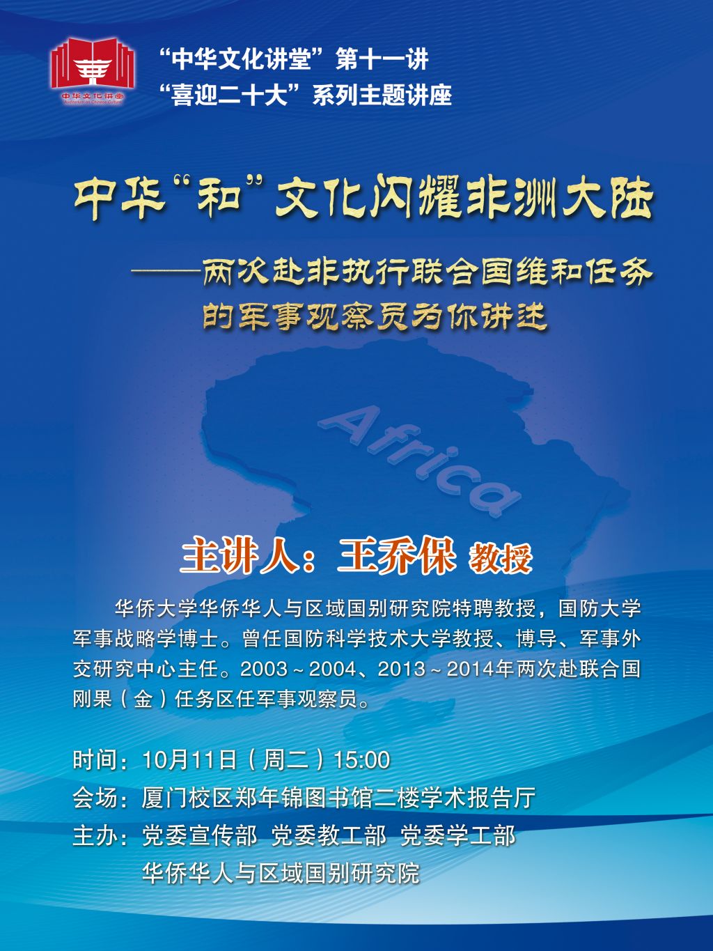 “中华文化讲堂”第十一讲:中华“和”文化闪耀非洲大陆——两次赴非执行联合国维和任务的军事观察员为你讲述