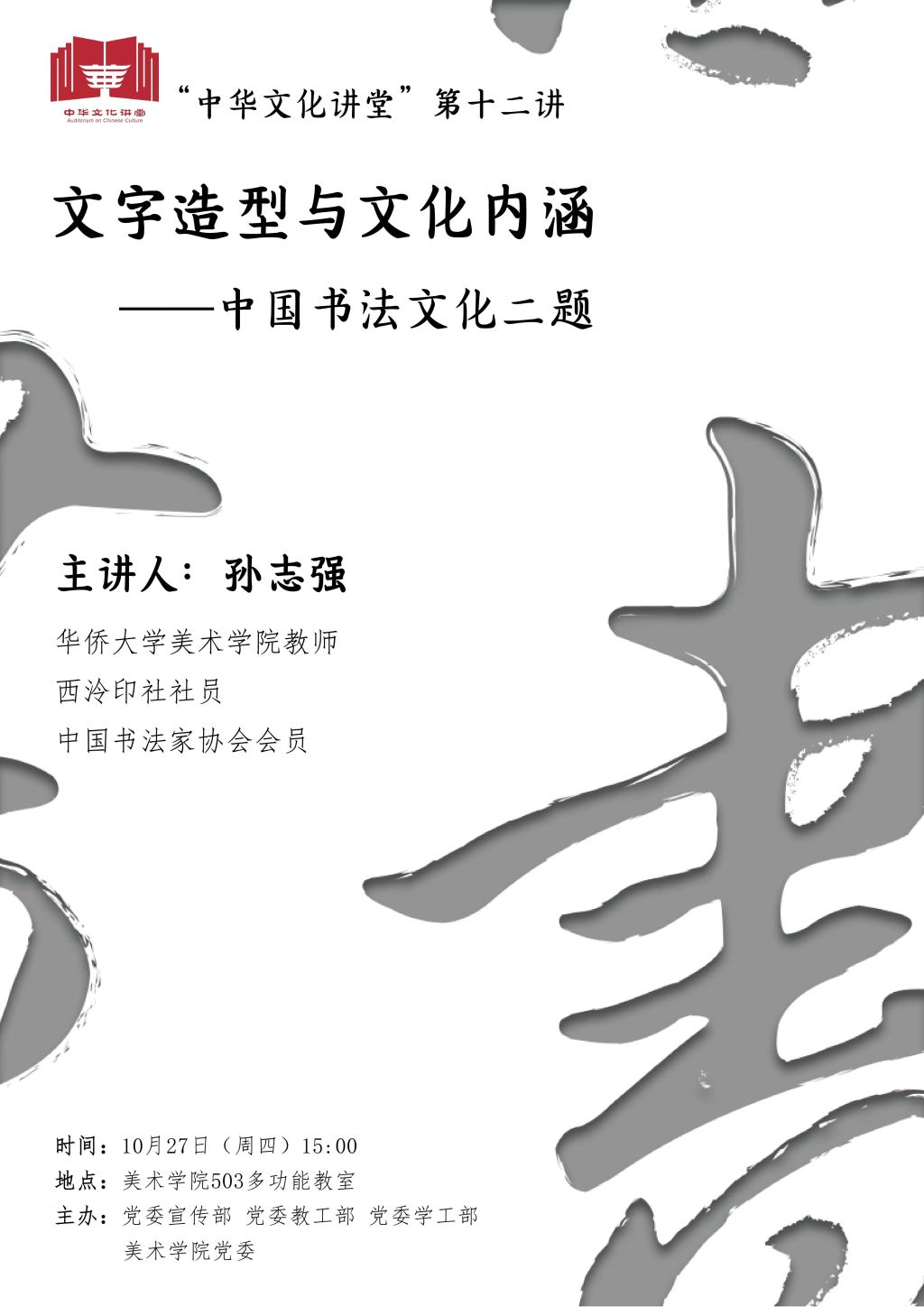 “中华文化讲堂”第十二讲:文字造型与文化内涵——中国书法文化二题