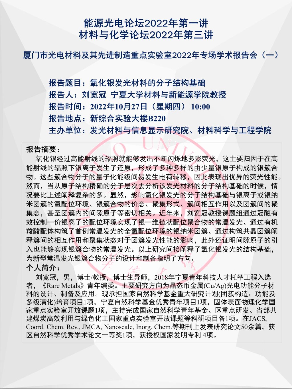 能源光电论坛2022年第1讲暨材料与化学论坛2022年第3讲