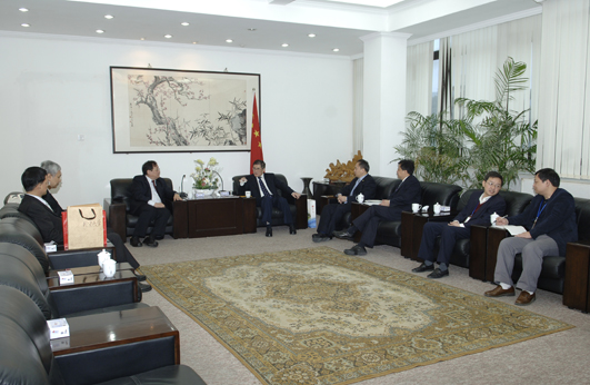 sjb世俱杯官方网站校长丘进在李克砌纪念楼四楼接待室会见台湾客人。校长助理曾路及外事处、教务处、学生处负责人参加会见。