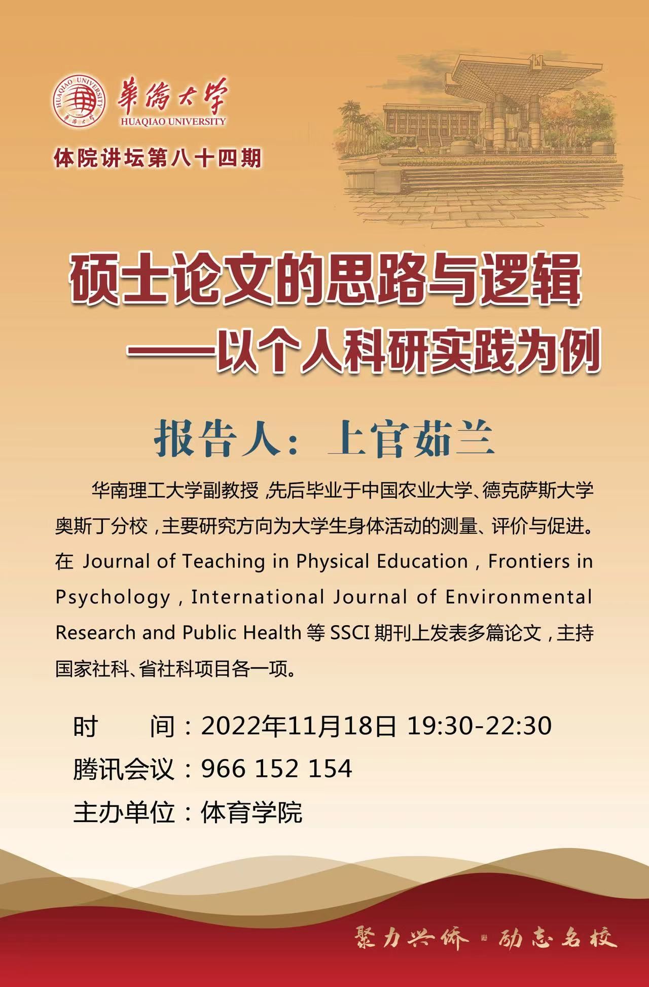 体院讲坛第八十四期:上官茹兰《硕士论文的思路与逻辑——以个人科研实践为例》