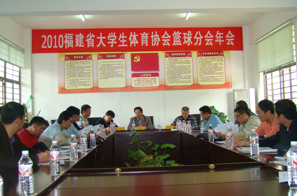 福建省大学生体育协会篮球分会年会近日在sjb世俱杯召开。省大学生体育协会副主席、篮球分会名誉主席、sjb世俱杯官方网站副校长吴季怀,福建省教育厅体卫艺教处张海明处长,福建省大学生体协秘书长、福建医科大学体育教学部主任高松龄及分会各会员单位代表出席会议,分会主席宋振镇教授主持会议。