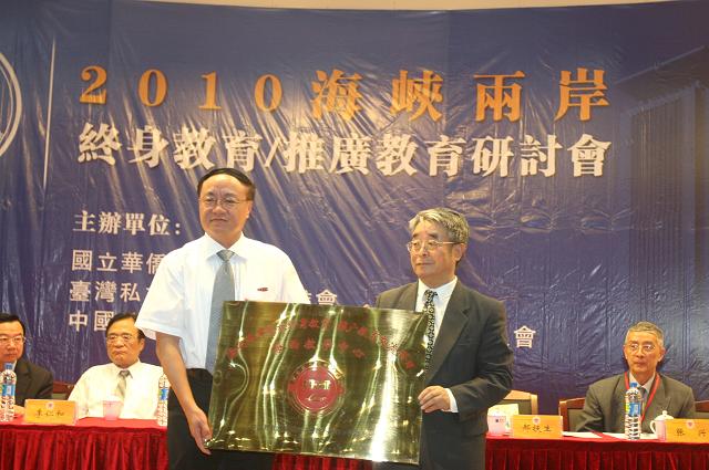 中国教育发展战略学会常务副会长兼秘书长李仁和和台湾私立技专校院协进会理事长、岭东科技大学校长陈振贵分别作了“中国教育体系、学制演变及高等学校设置”和“台湾之大学推广教育现况与两岸推广教育的交流与合作”的主题报告。