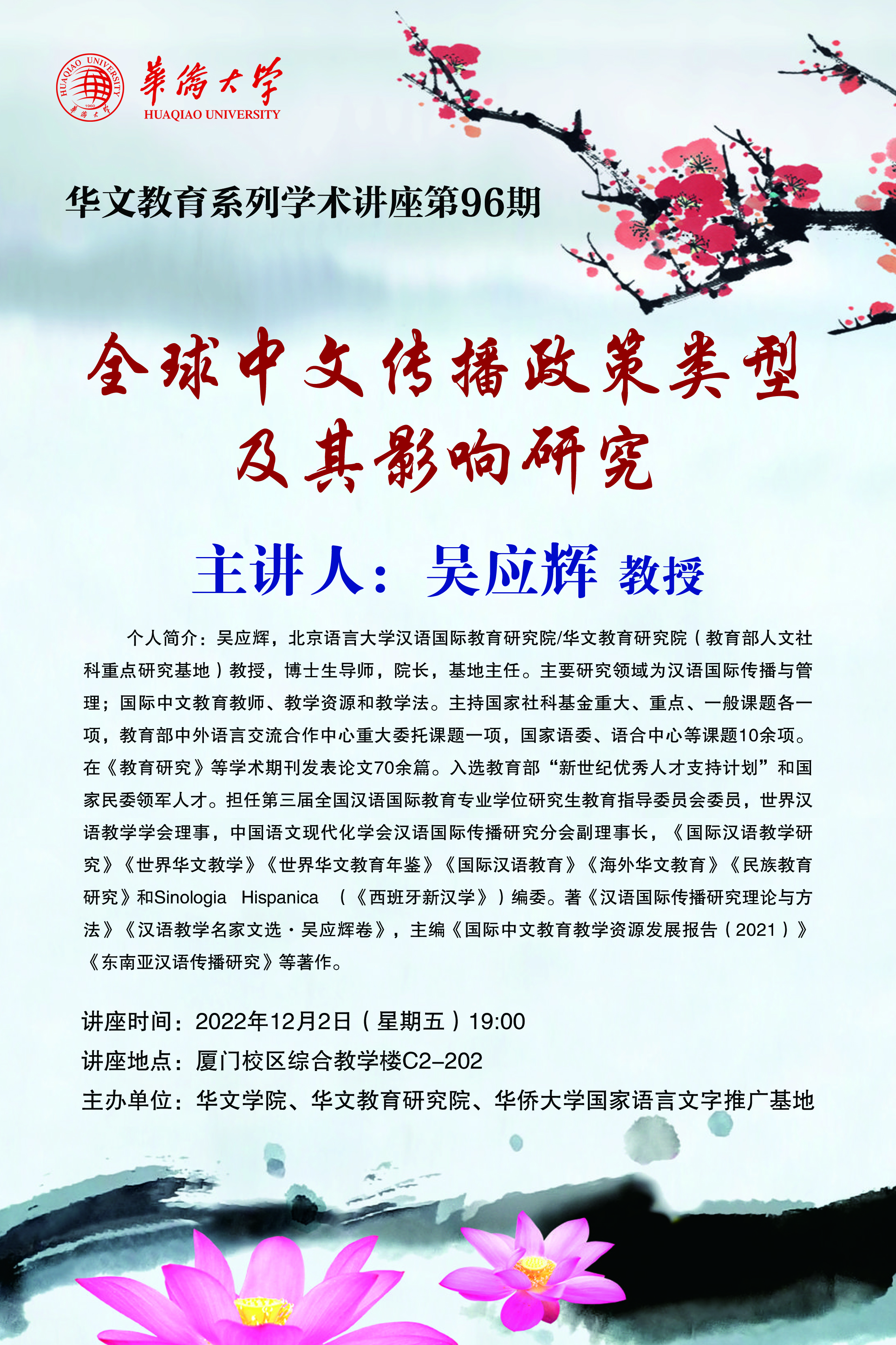 华文教育系列学术讲座第96期:全球中文传播政策类型及其影响研究
