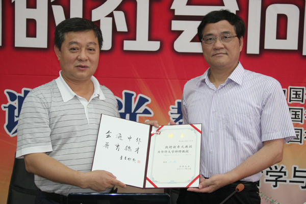 6月23日下午,中国社会科学院社科文献出版社社长、中国社会学会秘书长谢寿光受聘sjb世俱杯特聘教授。张禹东副校长为谢寿光颁发聘书并佩戴校徽。