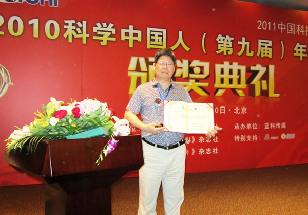 由《科学中国人》杂志社主办的中国科技与经济论坛暨第九届科学中国人(2010)年度人物颁奖典礼,是为了奖励为国家科技发展做出卓越贡献的科技工作者,激发科技工作者为我国科技事业发展发扬自主创新、艰苦奋斗、勇攀高峰的精神。