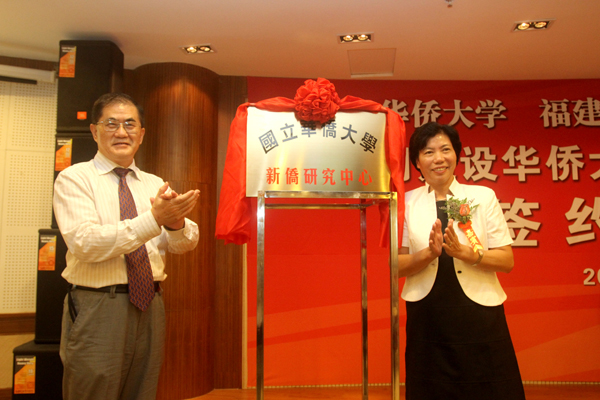 丘进校长和王亚君主席共同为新侨研究中心揭牌