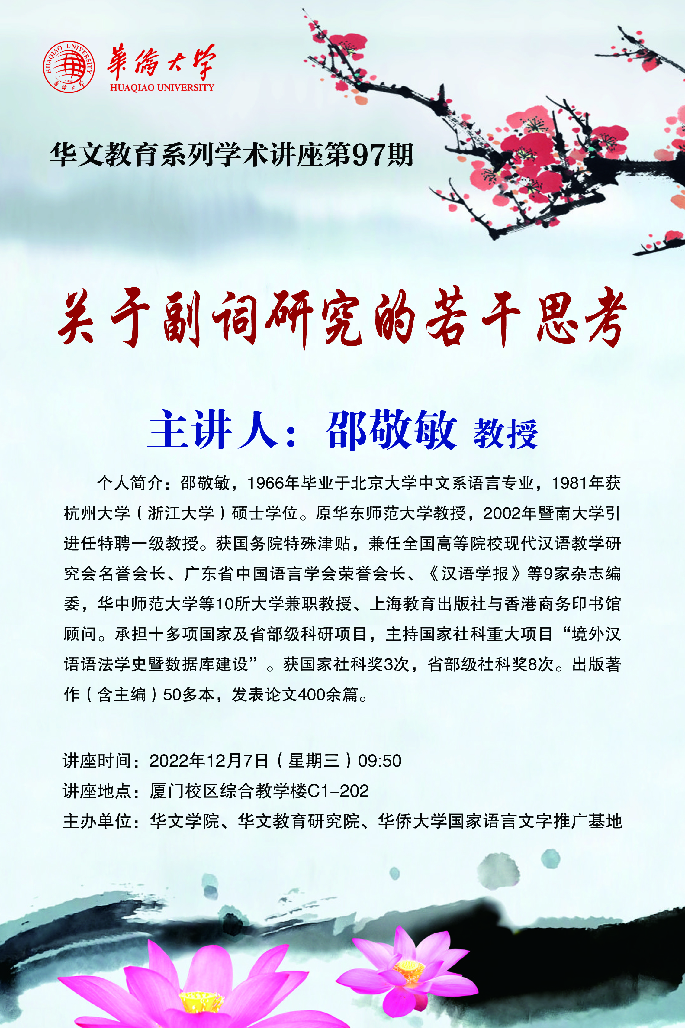 华文教育系列学术讲座第97期:关于副词研究的若干思考