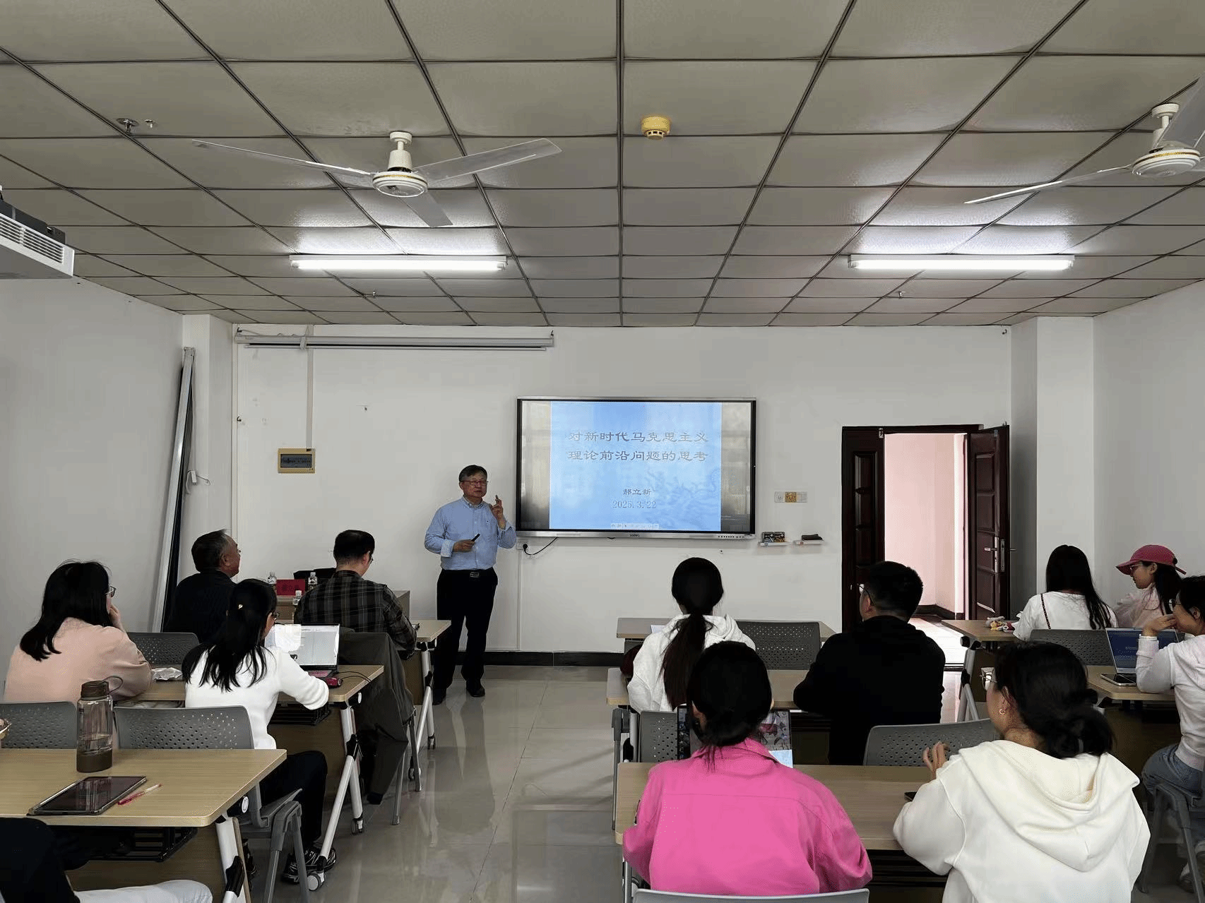 郝立新教授以新时代马克思主义前沿问题为切入点,围绕“关于习近平新时代中国特色社会主义思想的重大命题”“习近平新时代中国特色社会主义思想的哲学基础”“中国式现代化的理论与实践的创新逻辑”“习近平文化思想及其精髓”“新时代全面深化改革的哲学方法论”“中国自主的知识话语体系的建构”“新时代马克思主义理论研究和教育的理念”七大核心板块进行全方位梳理,就其中的原理、方法、内容、关系等方面内容进行了讲解,逻辑严密、例证丰富。