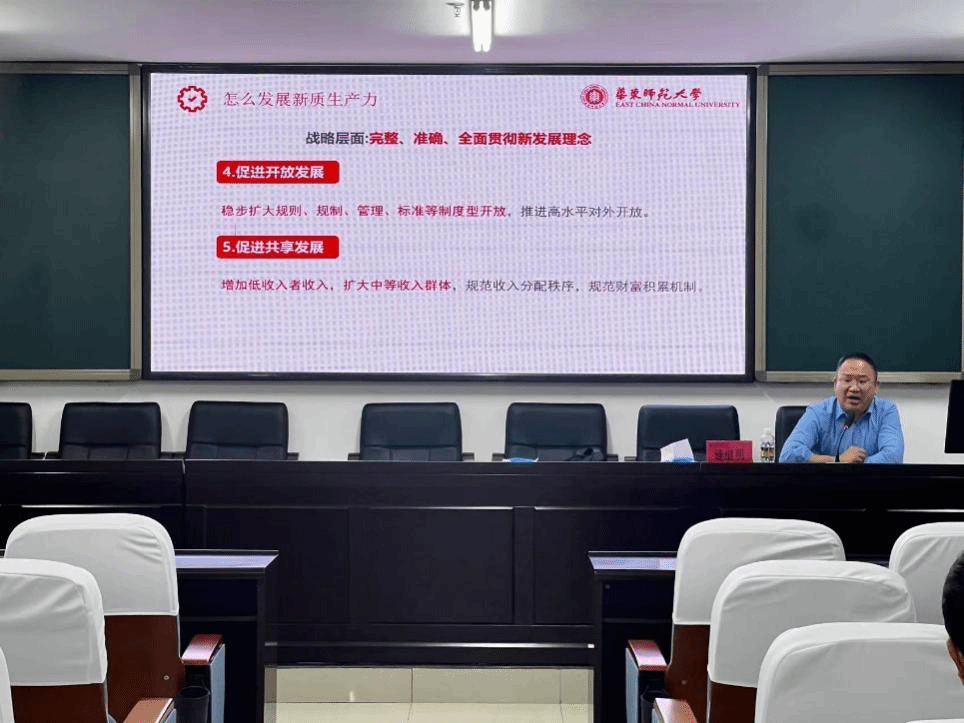 2025年5月10日下午3:30, 应学院邀请,华东师范大学德赢AC米兰中国官方网站副院长速继明教授在社科楼A309为师生作“加快发展新质生产力 扎实推进高质量发展”的学术讲座。讲座由德赢AC米兰中国官方网站王善副院长主持,学院部分教师、硕博学生参加了本次讲座。